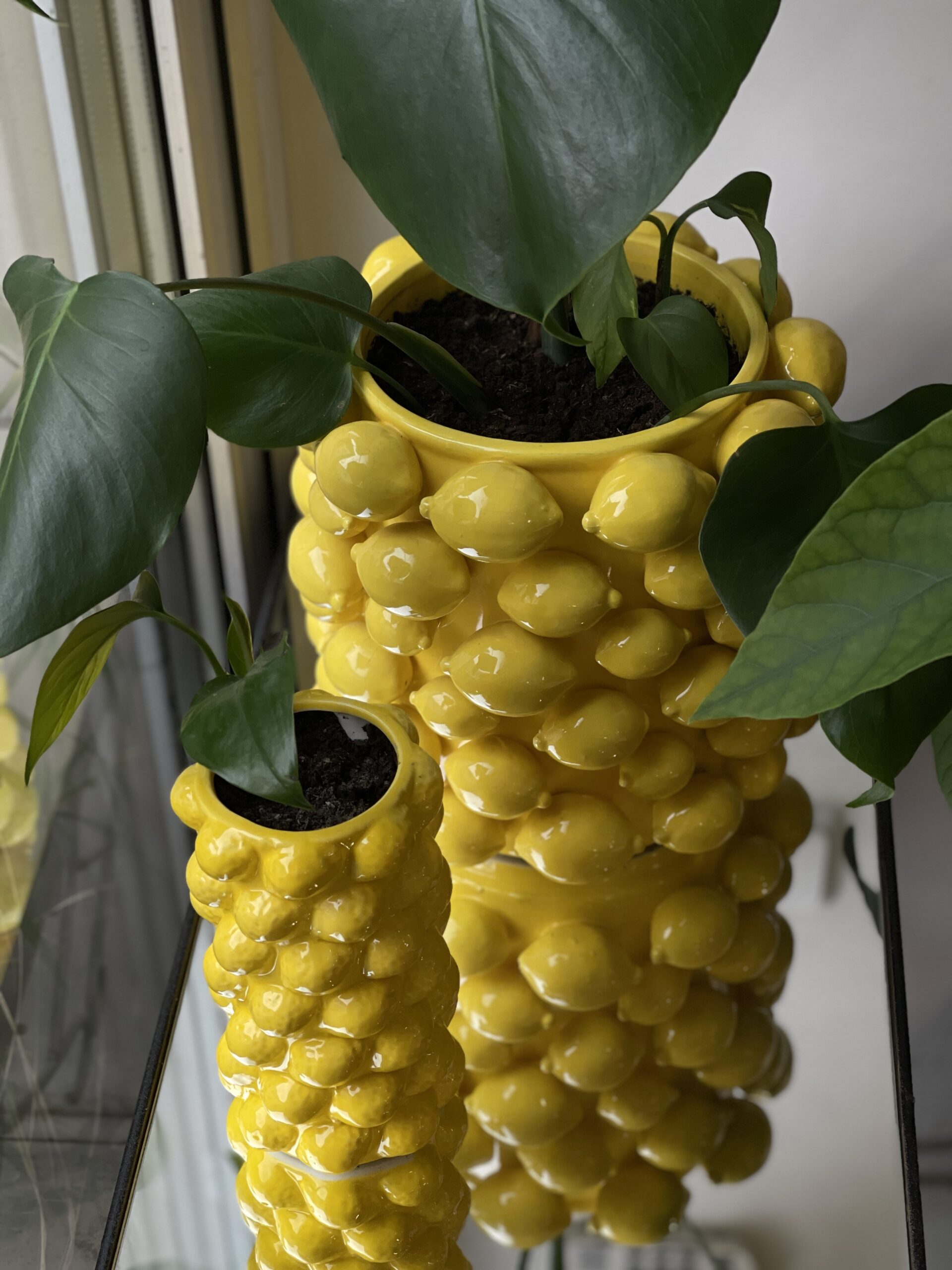 Vidutinė ir maža vaza padengtos įspūdingu, rankų darbo primenančiu paviršiumi. Reljefinės citrinos traukia akį ir suteikia charakterio jūsų namams. Tai ne tik vaza, bet ir dekoratyvinis meno kūrinys.